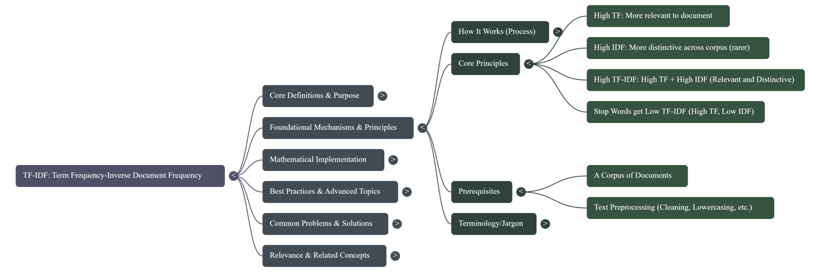 - Text Preprocessing: Typically, text needs to be cleaned (e.g., lowercasing, removing punctuation, stop word removal, stemming/lemmatization) before TF-IDF calculation to ensure meaningful term comparison.
